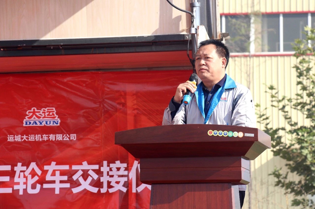 10月11日下午15:00,運城市快遞行業協會-大運快遞車交接儀式在運城大運三輪車生產基地隆重舉行,來自社會及行業的各級領導嘉賓共百余人參加了本次活動。