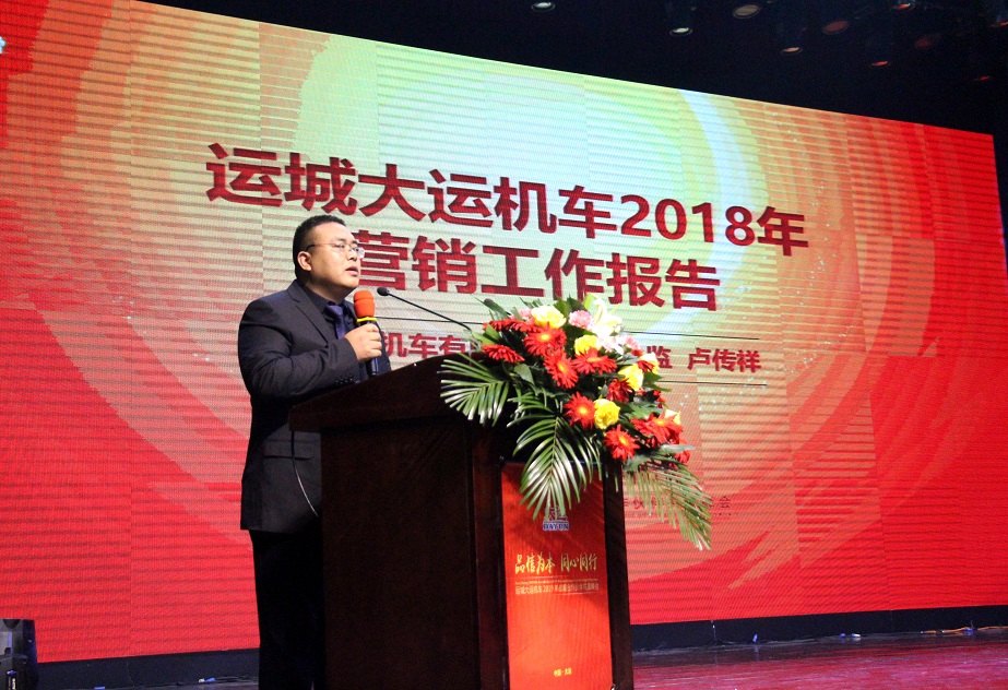 運(yùn)城大運(yùn)機(jī)車營銷總監(jiān)盧傳祥在營銷工作報告中提到,2019年公司將繼續(xù)發(fā)揮技術(shù)力量、管理模式、檢測設(shè)備等雄厚資本優(yōu)勢,堅持以公信力、專業(yè)性為原則,深耕市場,精準(zhǔn)服務(wù),提形象、豎標(biāo)桿,建立經(jīng)銷商榜樣的力量,全力沖擊2019。
