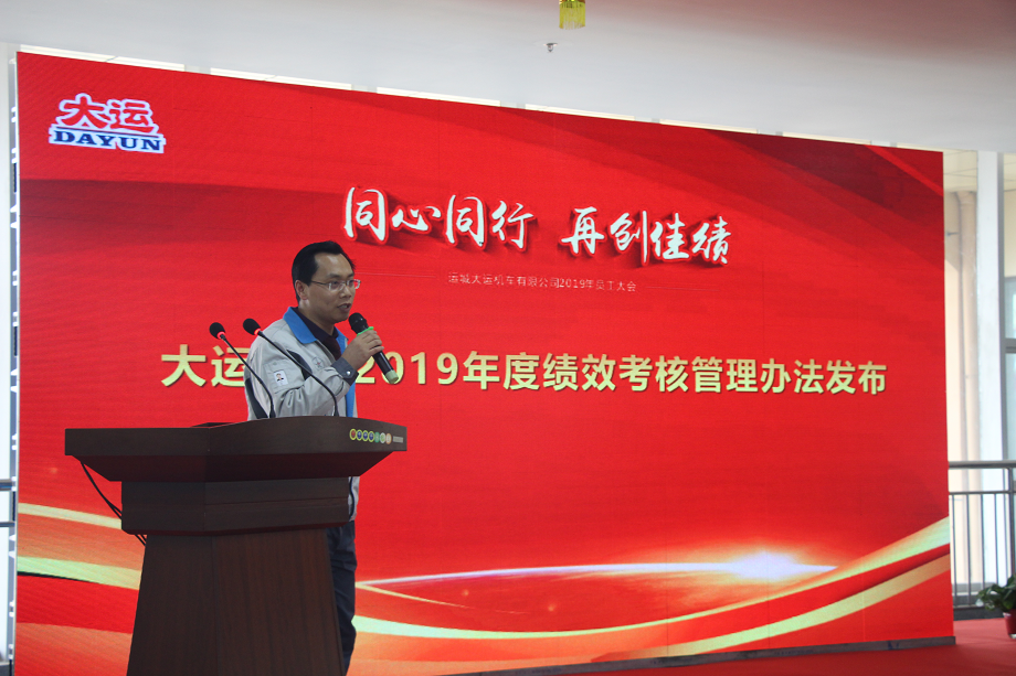 大會首先聽取了大運(yùn)機(jī)車總經(jīng)理助理姚占衛(wèi)頒布的《大運(yùn)機(jī)車2019年經(jīng)營大綱》,明確了公司各部門2019年經(jīng)營指標(biāo)。他指出,新的一年,公司全體員工要以更加堅定的信心,更加鏗鏘的步伐,更加務(wù)實的作風(fēng),奮發(fā)拼搏、開拓進(jìn)取,努力開創(chuàng)企業(yè)高質(zhì)量發(fā)展的新局面。
