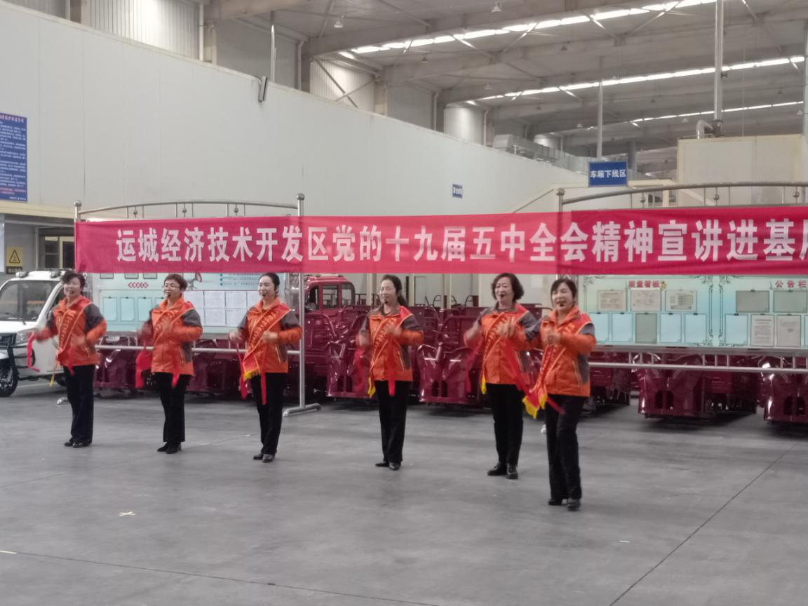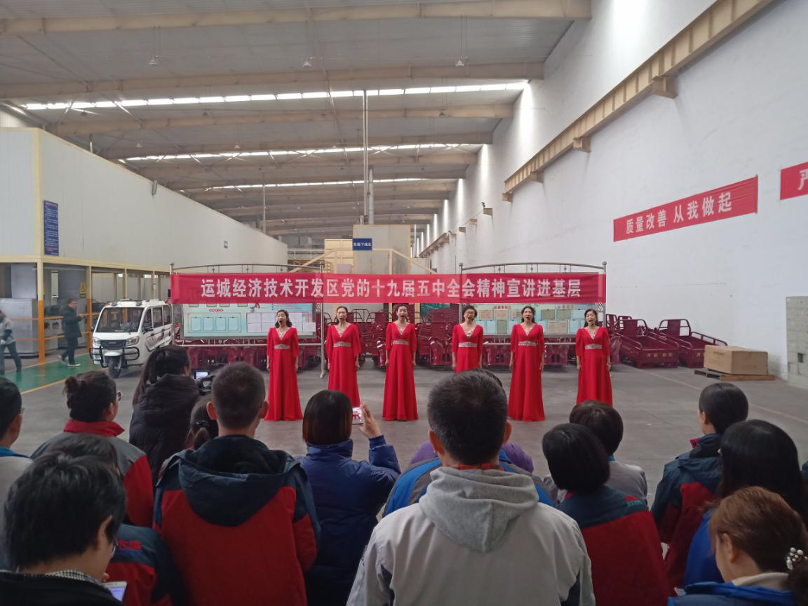 12月11日,運(yùn)城經(jīng)濟(jì)技術(shù)開發(fā)區(qū)總工會來到大運(yùn)機(jī)車有限公司,開展黨的十九屆五中全會精神宣講。為引領(lǐng)廣大職工群眾聽黨話、跟黨走,進(jìn)一步豐富職工的文化生活,此次通過快板、合唱、現(xiàn)場提問等大家喜聞樂見的方式開展。